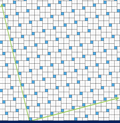 (Az 1x1-es négyzetek mellett van négy darab 2x2-es nagy négyzet.) Cikk-cakkban közlekedek. A kicsi csempéket nem használhatom, maximum csak érinthetem őket a fugáknál, szerencsére akármilyen keskeny (fugányi széles), egyenes útvonalon tudok közlekedni.