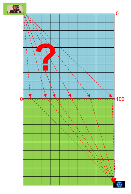 A pázsitot és az úszómedencét elválasztó 100 m-es határvonal mely pontját célozta meg ez a szuperember, vagyis mely ponton kellett kipattannia a medencéből, hogy futni kezdjen (8 pont)?
