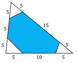 Mekkora a kék színű hatszög területe? (A számadatok pontosak, az ábrázolás hozzávetőleges.)